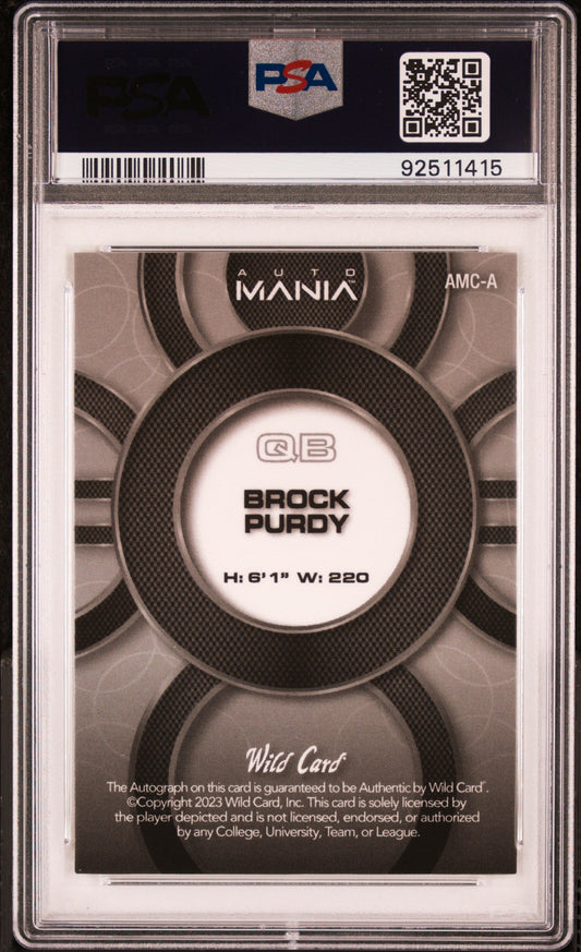 2023 Wild Card Auto Mania Pro Look Autographs Brock Purdy #AMCA CRC Silver Platinum PSA 9
