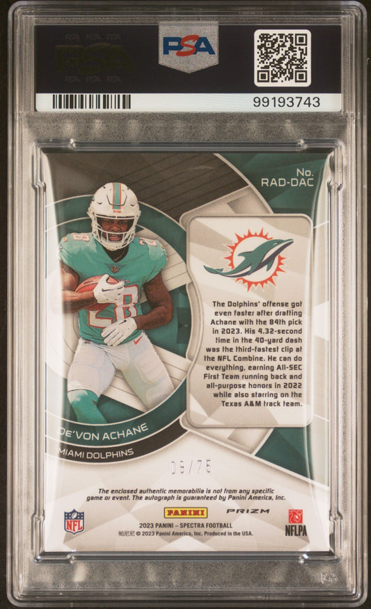2023 Panini Spectra Radiant Rookie Patch Signatures De'von Achane #RADDAC RK Celestial PSA 9