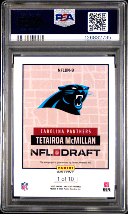 2025 Panini Instant NFL Draft Night Tetairoa Mcmillan #NFLDN9 Auto Red PSA 9