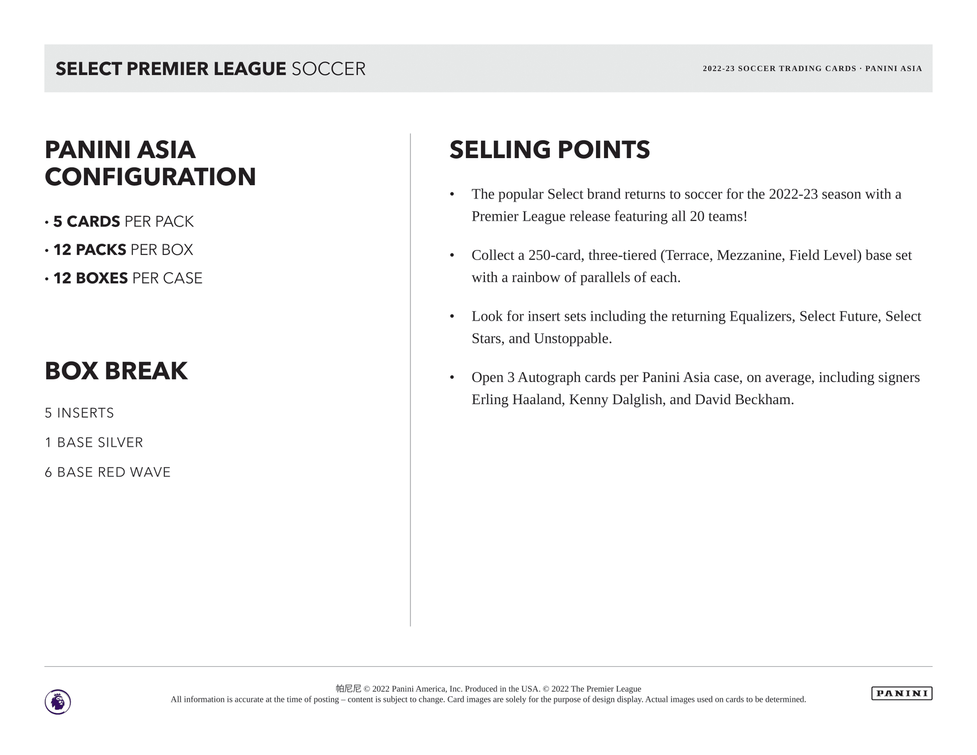 2022-23 Panini Select Premier League Soccer Cards TMALL PRODUCT HIGHLIGHTS: