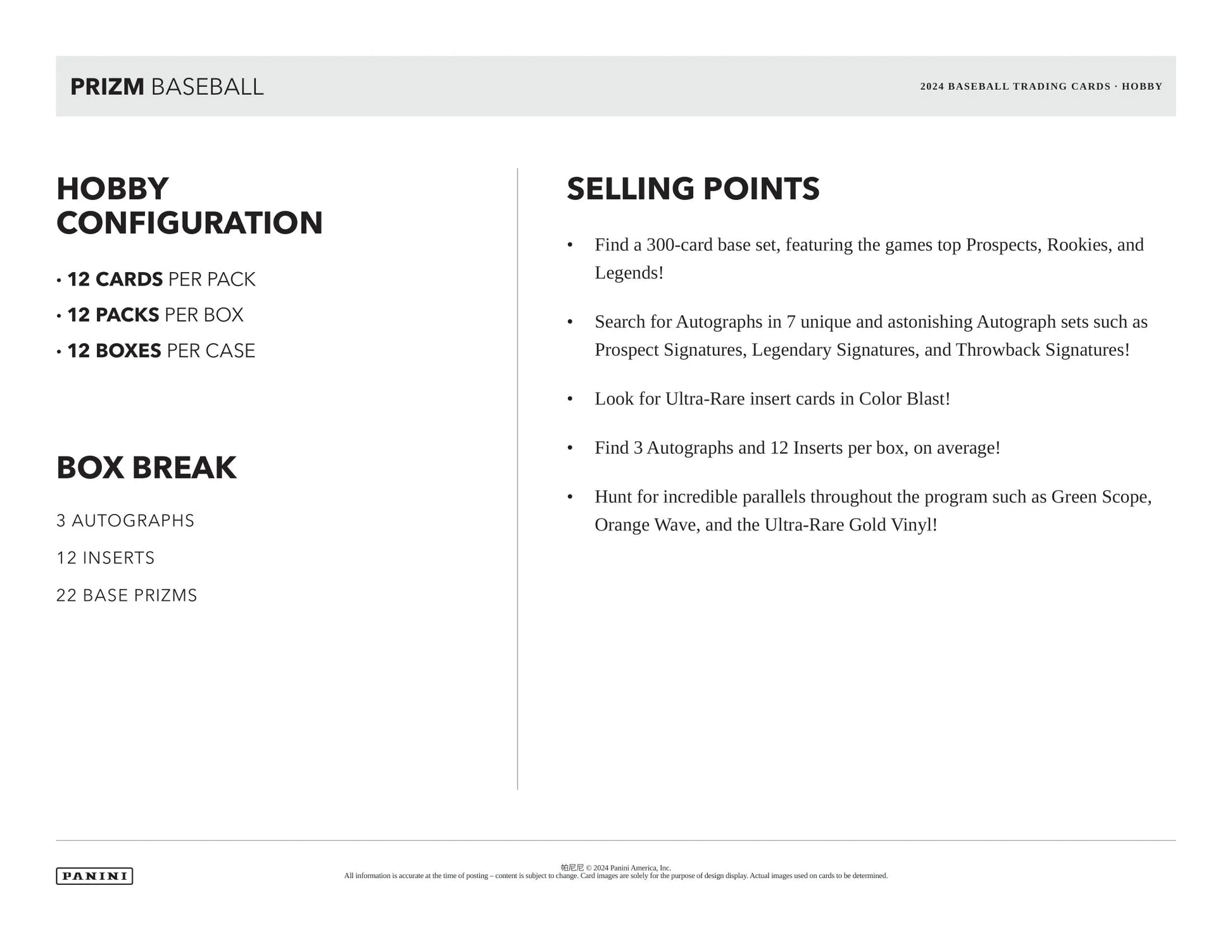2024 Prizm Baseball Cards PRODUCT HIGHLIGHTS: