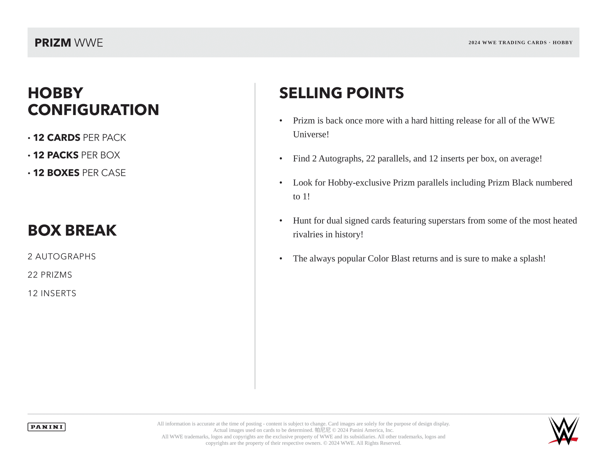 2024 Panini Prizm WWE Trading Cards Cards PRODUCT HIGHLIGHTS: